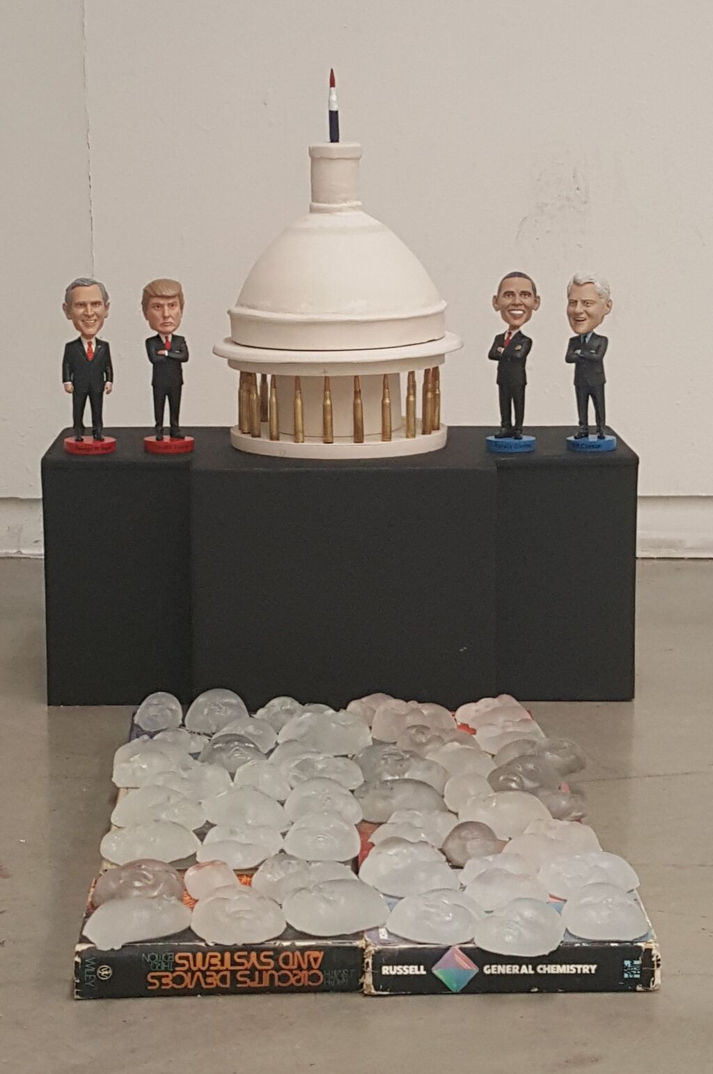 Reflected in the baby faces are the four presidents who have held office since Columbine. Their faces peer down as if in contemplation — or shame. The reflection asks a question none of them fully answered: